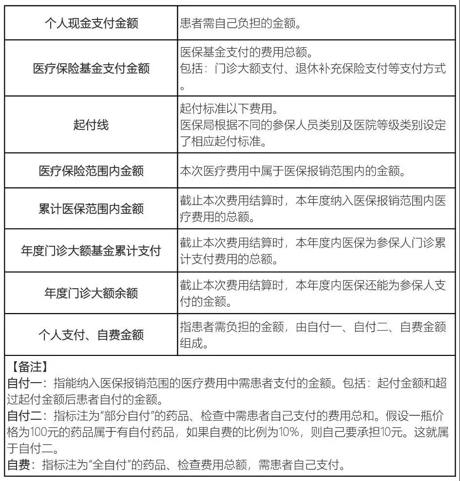 比如:起付标准、自费药品、基本医疗之外费用等。今天就帮大家解析一下,结算单上各个费用名称,来帮助大家迅速读懂医保报销: