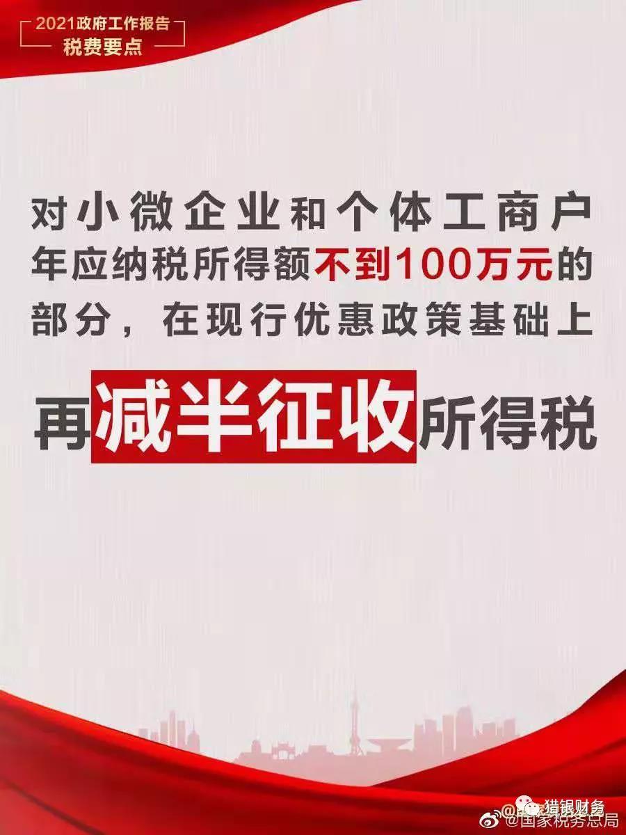对小微企业和个体工商户年应纳税所得额不到100万元的部分,在现行优惠政策基础上,再减半征收所得税。