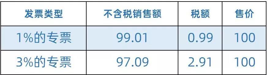 例如原含税售价100元的商品,按照适用3%征收率时的不含税价格,再按照1%的征收率重新定售价。