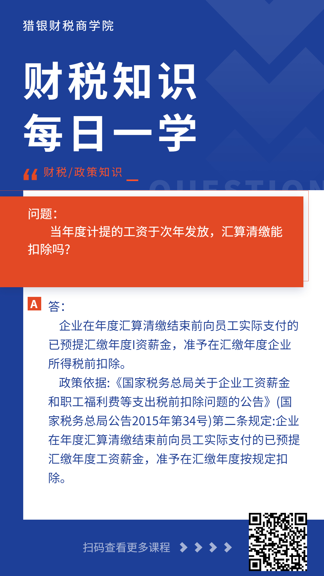 政策依据:《国家税务总局关于企业工资薪金和职工福利费等支出税前扣除问题的公告》(国家税务总局公告2015年第34号)第二条规定:企业在年度汇算清缴结束前向员工实际支付的已预提汇缴年度工资薪金,准予在汇缴年度按规定扣除。